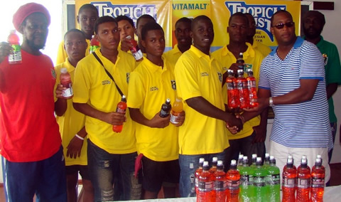Powerade and Glaceau Vitamin Water were presented to the National cricketers currently preparing for the 2010 Airtel Twenty20 Champions League in South Africa next month, the National Under-17 footballers now preparing for CFU second round World Cup qualifying series, GCC hockey players as part of the promotion exercise.